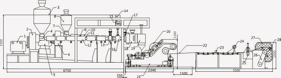 2、精確的模具流道設(shè)計,柔性模唇間隙微調(diào)裝置及可更換、可調(diào)節(jié)模唇。